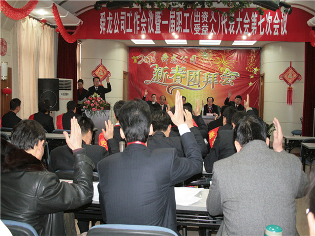 2011年元月28日上午8:00,舜龍公司工作會(huì)議暨一屆職工(出資人、受益人)代表大會(huì)第七次會(huì)議在公司會(huì)議室隆重召開。參加會(huì)議的人員有集團(tuán)公司股東代表劉萬春副部長、市場(chǎng)營銷部亓仲晨副部長、職工代表、受表彰的先進(jìn)集體和個(gè)人。
