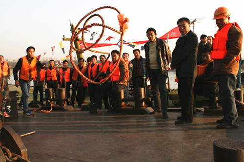 12月2日下午,舜龍公司2013年度“安康杯”競賽航運(yùn)技能比武在平圩碼頭舉行。公司董事長、黨委書記余龍懷,黨委副書記、工會主席王治全,紀(jì)委書記、副總經(jīng)理徐經(jīng)恒以及相關(guān)部門負(fù)責(zé)人到場觀看。比武活動由黨委副書記、工會主席王治全主持。徐經(jīng)恒擔(dān)任裁判組組長。