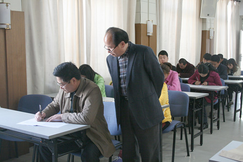 董事長(zhǎng)余龍懷在巡視考場(chǎng)